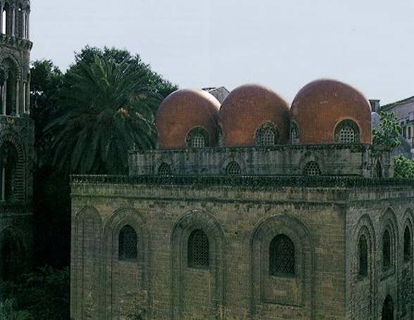 Le tre cupolette poste sulle tre navate. Si nota la struttura a "Cuba" tipica della architettura araba
