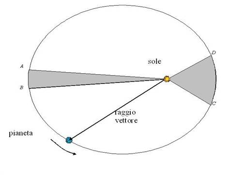 Il raggio vettore che unisce il centro del Sole con il centro del pianeta, descrive aree uguali in tempi uguali.