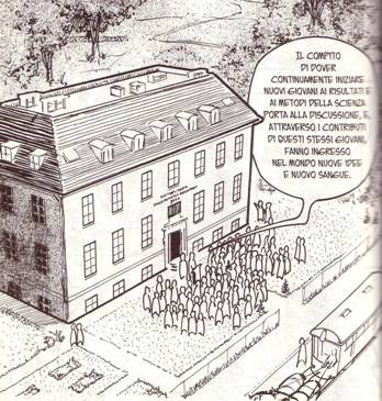Dal sentimento come motore di scienza e arte, alle responsabilità dell'intellettuale di fronte alla società e alla storia: il corso del tempo pare velato da un nostalgico pessimismo dovuto alla consapevolezza che il progresso tecnologico, scientifico e civile trae la sua linfa vitale dal cambiamento, dalla distruzione del passato. C'è chi si fossilizza nel guscio del proprio ricordo (come l'abile ma arcigno Schultz, che ha vietato espressamente di continuare la tradizione dei Peanuts34) e chi semplicemente si scusa: già Einstein chiedeva perdono a Newton per aver aperto le strade ad una nuova fisica che avrebbe soppiantato i concetti classici del "maestro"; ma è lecito pensare che tra qualche decennio lo stesso Einstein sarà chiuso in una teca di cristallo per lasciare spazio a nuove, strabilianti scoperte. Interessanti dunque le parole del filosofo della scienza Feyerabend35, che ha fatto vacillare l'eccessiva fiducia nella scienza, la quale evidentemente non può più pretendere di spiegare la realtà con un processo rigoroso. Questo, peraltro, lascia spesso spazio a mezzi ben più artistici e sentimentali per raggiungere il cuore dell'uomo e rimanervi. La scienza si spiega dunque come una "messa in scena", proprio come l'arte. E non c'è contraddizione in tutto questo: "Talete aveva avuto bisogno di una piramide, Eratostene di un pozzo, Archimede di una vasca da bagno, specchi ustori, di mani di ferro, eccetera. La piramide del primo, come il pozzo del secondo e i marchingegni del terzo non sono necessari ad accertare la verità scientifica, né ad aumentare il rigore della dimostrazione; sono là per colpire l'immaginazione e consentire di rispondere all'interrogativo: -In che modo questa verità ci riguarda?-. Le verità scientifiche hanno bisogno di belle storie perché gli uomini possano affezionarvisi. Il mito, in questo caso, non ha lo scopo di entrare in concorrenza col vero, bensì di stabilire il contatto con quello che preme agli uomini e che li fa sognare36".