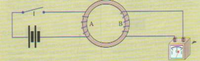 La figura 1 mostra uno schema del dispositivo di Faraday: un anello di ferro che passa attraverso due bobine A e B.