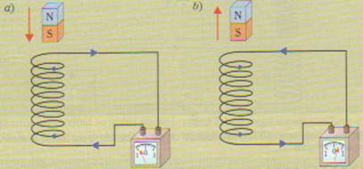 Se la calamita è allontanata dalla bobina (fig. 2b) il verso della corrente indotta è l'opposto.
