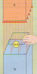 Si trova anche (fig. 3), agli effetti del verso della corrente indotta, che l'avvicinamento del polo Nord della calamita alla bobina equivale all'allontanamento del polo Sud e, viceversa, il verso della corrente indotta nella bobina quando si allontana il polo Nord coincide con quello della corrente che si produce quando si avvicina il polo Sud.