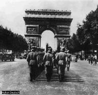 Infatti, come nel 1914, i tedeschi iniziarono l'attacco violando la neutralità dei piccoli Stati confinanti. Questa volta, oltre al Belgio, furono invasi anche Olanda e Lussemburgo. Fra il 12 e il 15 maggio, dopo aver attraversato velocemente la foresta delle Ardenne (ritenuta dai francesi invalicabile dai carri armati), i reparti corazzati tedeschi sfondarono le linee nemiche nei pressi di Sedan. Le truppe tedesche dilagarono quindi in territorio francese e puntarono verso il mare, chiudendo in una sacca molti reparti francesi e belgi e l'intero corpo di spedizione inglese, appena sbarcato sul continente. Solo un momentaneo rallentamento dell'offensiva consentì al grosso delle forze britanniche, assieme a circa 100.000 fra belgi e francesi, un drammatico reimbarco nel porto di Dunkerque (29 maggio-4 giugno). Il 14 giugno i tedeschi entravano a Parigi mentre interminabili colonne di profughi si riversavano verso il Sud.
