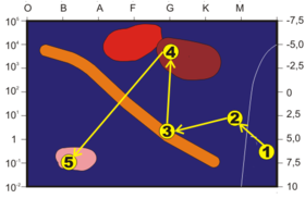 Uno strumento fondamentale per gli astronomi, al fine di comprendere l'evoluzione stellare, è il diagramma Hertzsprung-Russell (o diagramma H-R) che, riportando temperatura e luminosità (che variano insieme al raggio in funzione dell'età e della massa e della composizione chimica della stella), permette di sapere in che fase della vita si trova una stella. A seconda della massa, dell'età e della composizione chimica, i processi fisici in atto in una stella sono differenti e queste differenze portano stelle con caratteristiche diverse a seguire differenti percorsi evolutivi sul diagramma H-R.