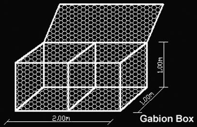 I gabbioni metallici sono delle scatole realizzate con una rete metallica, di forma parallele- pipeda o cubica che, dopo essere state riempite di ciottoli, vengono chiuse mediante abbas- samento del coperchio che viene legato lungo tutto il perimetro delle altre superfici laterali. (fig. 1.3.1)